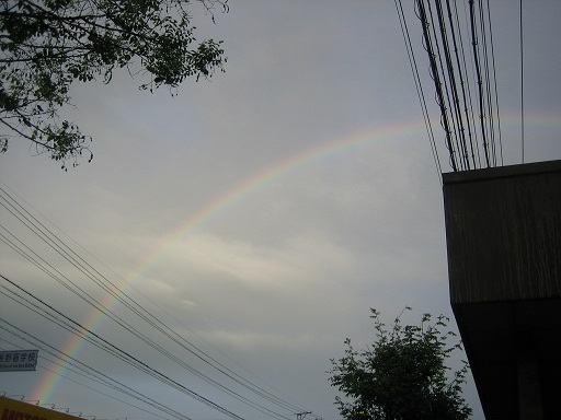 まさに「虹のかけ橋」です。子供のころは、このような虹を見たとき、「あれを渡って遠くへ行きたい」などと本気で考えたものですが、正体を知った大人でも「渡ってみたいな」と思うのではないでしょうか。七年ほど前でしょうか、「ムーンボウ」を見たことがあります。授業が終わって夜遅く帰宅した時、家の前で何気なく夜空を見上げたら、月の近くに赤色と紫色をした雲が見えたのです。残念ながらすぐ月に雲がかかってしまったため消えてしまったのですが、間違いなくムーンボウだったと今も思っています。